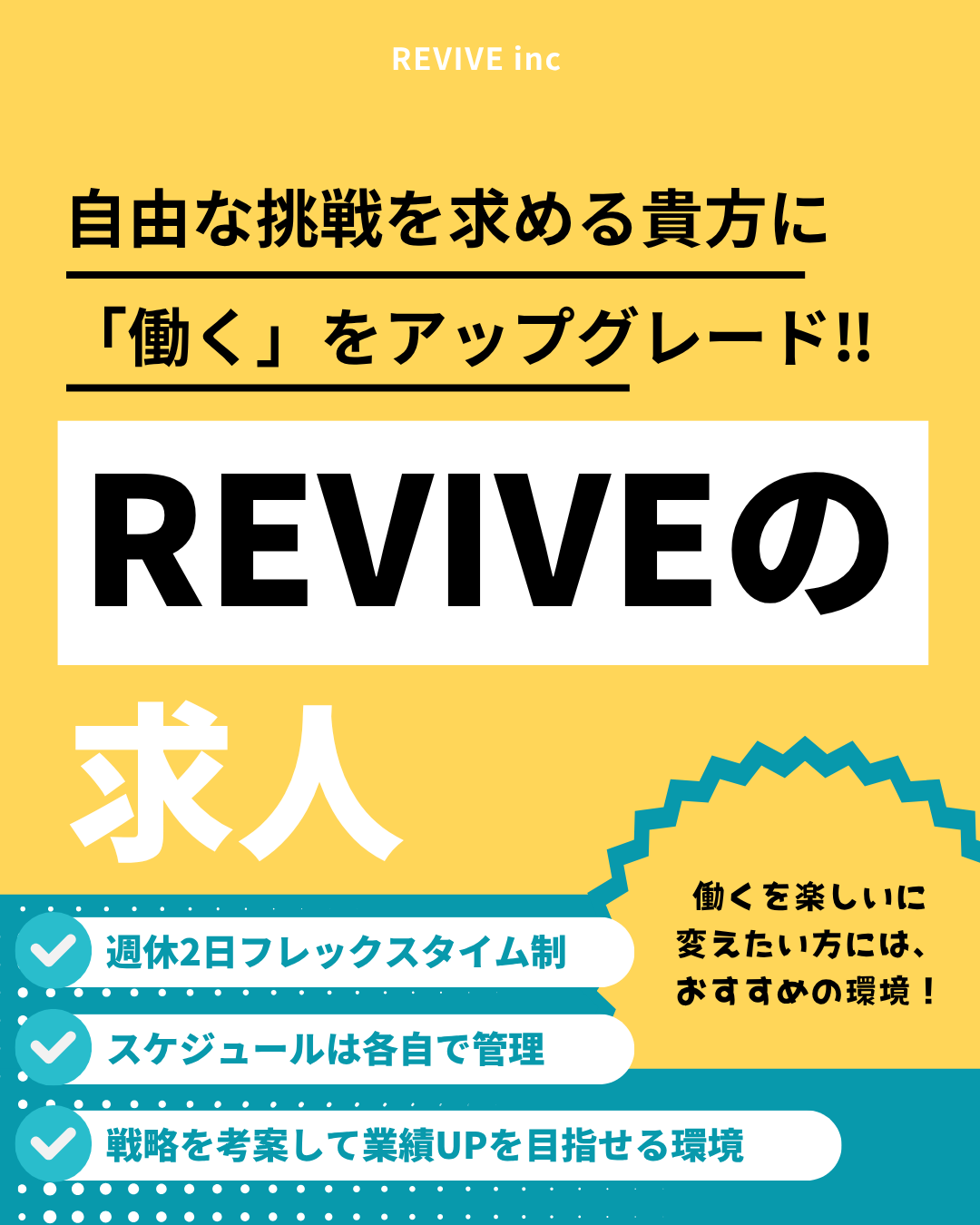 働くに進化を【株式会社REVIVEの求人】